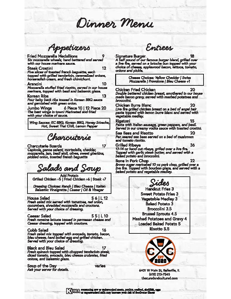 Sweet Thai Chili, KC BBQ, Cured Signature BBQ, Buffalo, Garlic Parmesan, Lemon Pepper, Korean BBQ, Rudyaki, Honey Sriracha, Teriyaki, Honey BBQ, Chili Lime, Hot Honey Bourbon